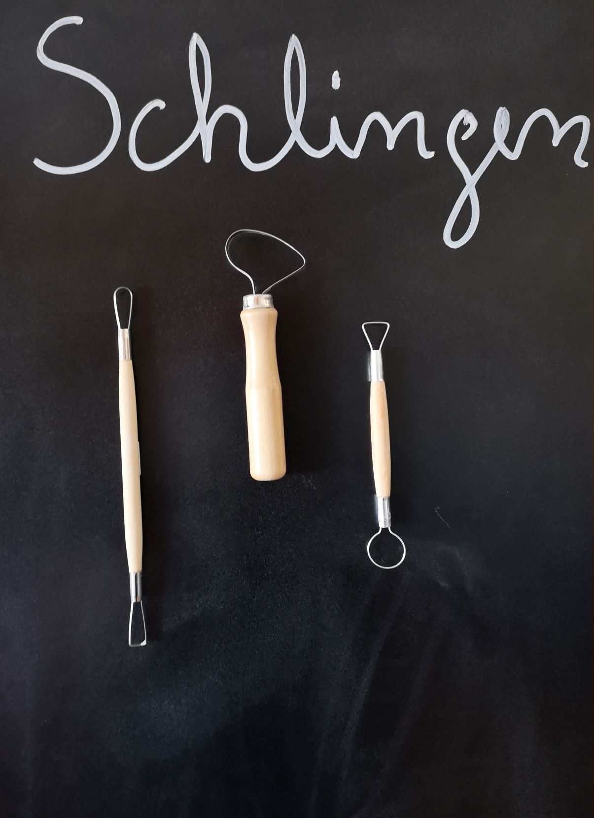 Die Stahl oder Messing Schlingen dienen zum abtragen von Ton, zum aushölen von Plastikenoder zum abdrehen von Gefäßen auf der Töpferscheibe |